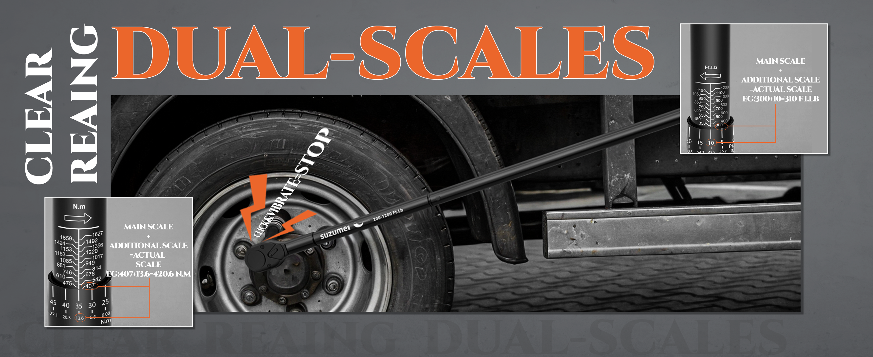 [Dual-Scales] This 1 Inch torque wrench features a distinct-visibility dual scale and seamless bidirectional adjustment for tightening/loosening. Its laser-engraved markings help resist wear, maintaining clarity through long-term use in large construction, mining, oil/gas, rail, and marine engineering scenarios. The legible scale supports efficient torque setting in these heavy-duty fields, helping reduce visual strain during on-site or shop tasks