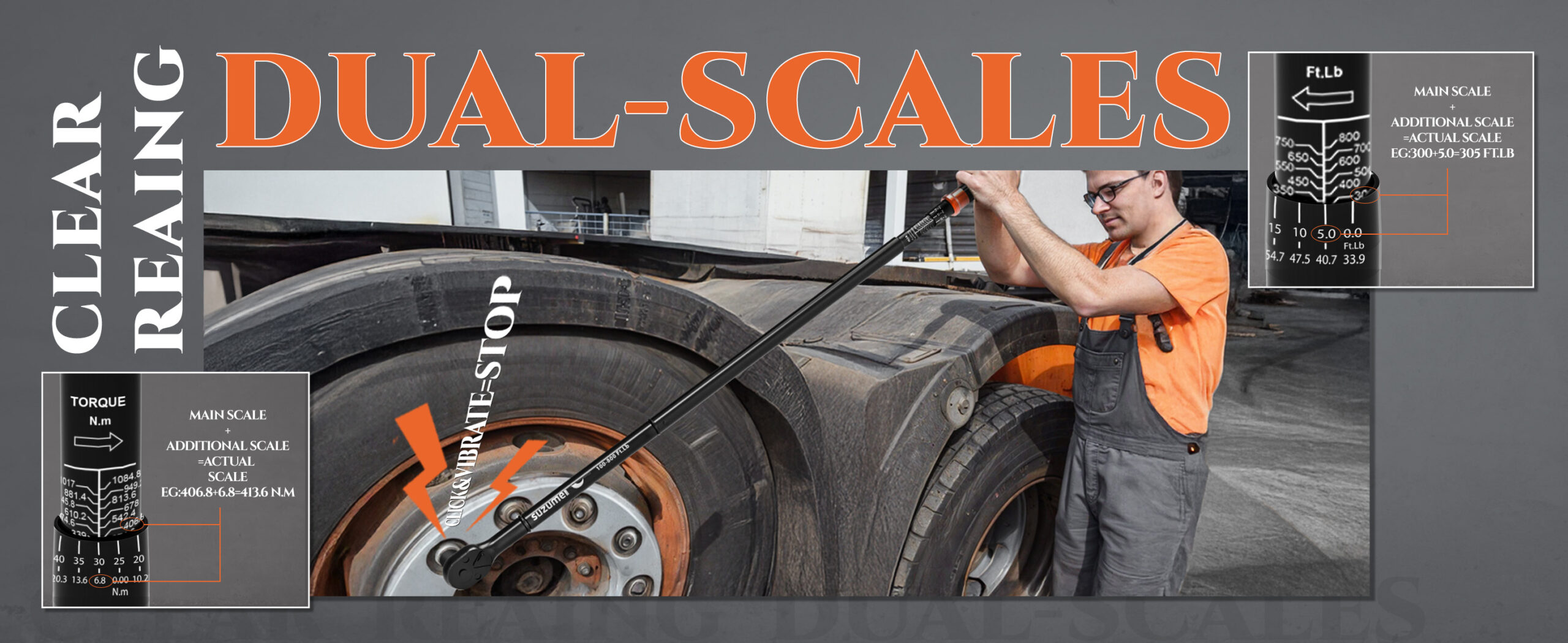 [Dual-Scale Design] When you’re kneeling in the dirt changing a truck tire or fixing heavy machinery—hands greasy, in a hurry—the last thing you need is a tricky scale. This 3/4 inch torque wrench has laser-etched dual scales (100-800 Ft-Lb/135.6-1084.8 N.m) that effectively help resist oil and grime. Pick Ft-Lb or N.m right away, no conversions. Even out in the outdoor environment, you won’t squint—those marks help stay clear