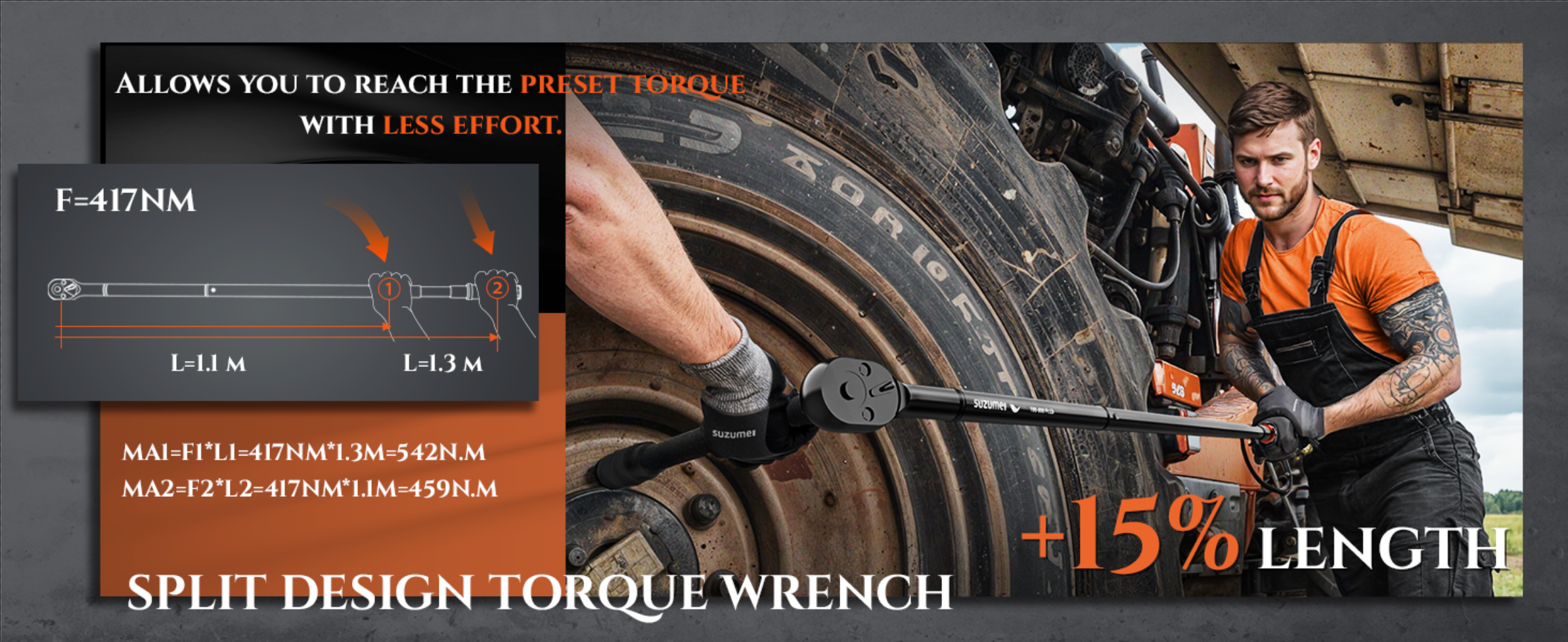 [Effortless Operation] This 3/4 torque wrench has a split-body structure: front section holds the torque preset mechanism, plus an extension rod that adds 15% more length than one-piece torque wrenches. Less muscle needed to hit preset torque, and you still get that loud “click” alert—no straining to hear it over truck engines or power tools. Its 24-tooth reversible ratchet stays intact after 10,000+ fatigue tests, with low risk of damage. Great for heavy truck/bus repairs, industrial equipment piping, construction, and farm/forestry machinery